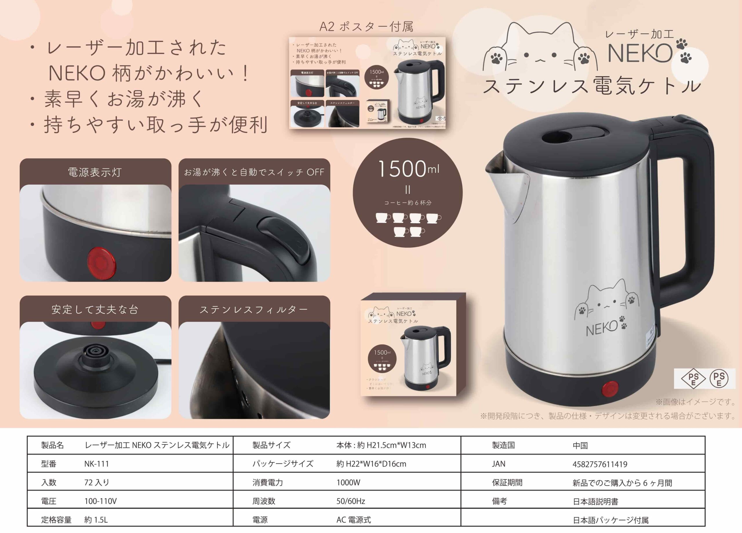 商品名レーザー加工 NEKO ステンレス電気ケトル NK-111