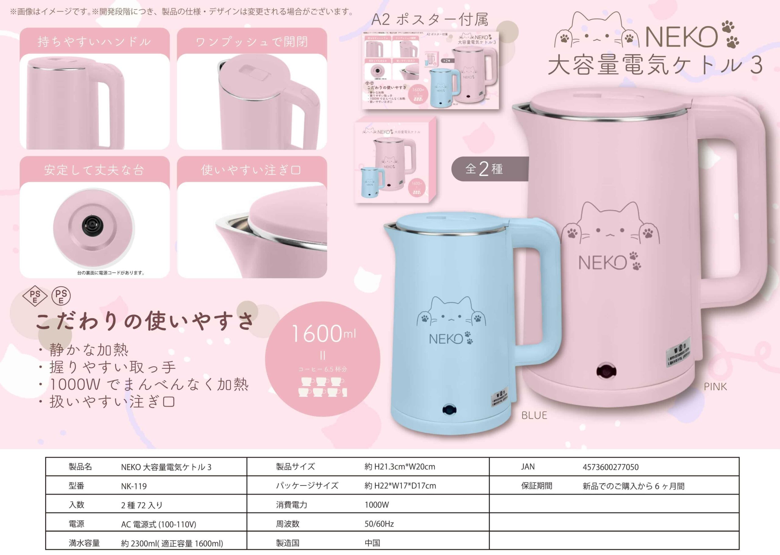 商品名NEKO 大容量電気ケトル3 NK-119